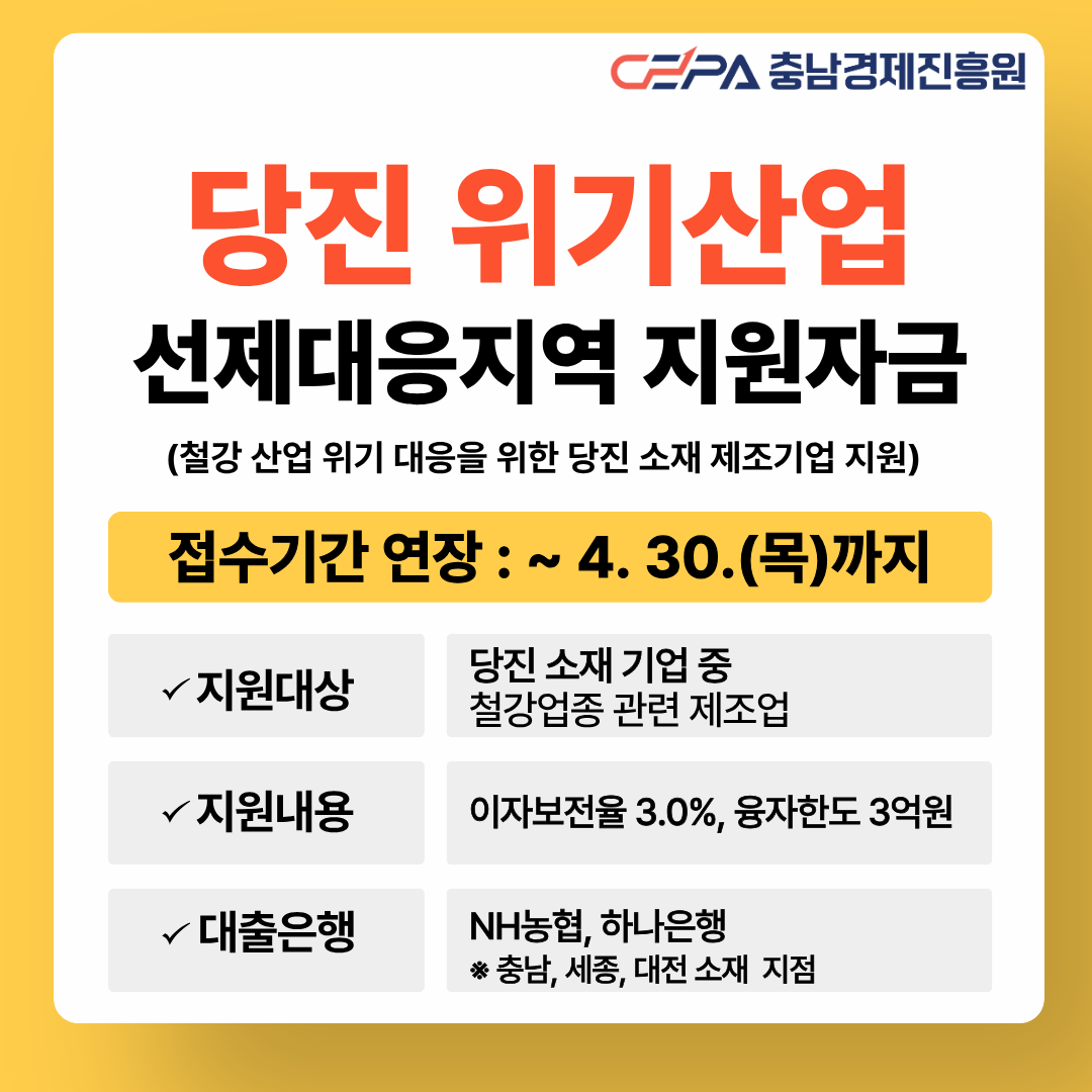 [접수일정] 당진 위기산업 선제대응지역 지원자금 융자 지원계획 공고(연장)